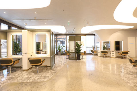 For this new IL COLPO hair salon, the interior designer has responded to the wellness-theme concept and the brand identity by creating a natural and relaxed retreat space since the outdoor is beautifully landscaped. The interiors are rich in natural lighting. Great use of transparent material, skylight ceiling, and frame-alike details to deliver the illusion that the interior penetrates with the natural landscape.