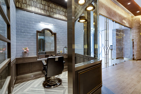 設計師構思的21世紀英國紳士理髮店概念,包括當中不少的設計元素,如彎曲的店面,維多利亞式家具,理髮椅,英式裝飾線條,木製元素,冷色調,金屬飾邊細節,壓紋,所有都彰顯了英式風格 。